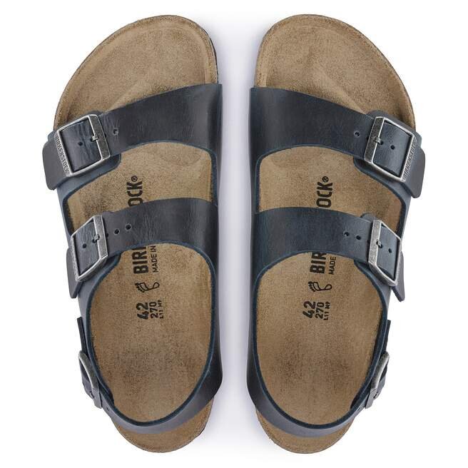 Milano-sandalen har ett justerbart bakre band i sin klassiska design med två remmar, vilket ger dig bättre säkerhet och en passform som sitter precis rätt. Det handgjorda, oljade nubucklädret har en tydlig heritage-känsla och är utformat för att åldras med tiden och få ett perfekt slitet, unikt utseende. Komplett med klassiska Birkenstock-designelement, som justerbara spännen och en konturerad fotbädd i kork och latex för ultimat stöd.