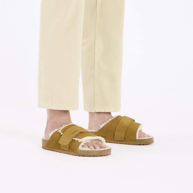 Kyoto Slide har ett mjukt foder av teddy-shearling. Det präglade mockaskinnet ger ett corduroy-liknande utseende och ger modellen en hantverksmässig kvalitet som är lika mjuk som den är slitstark. Allt vilar på vår konturerade fotbädd, utformad för att forma sig efter din fot med tiden för ultimat stöd.