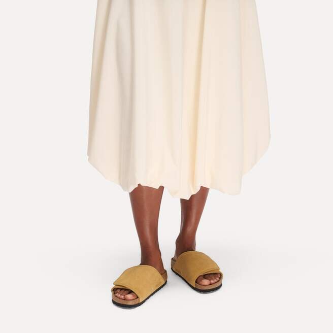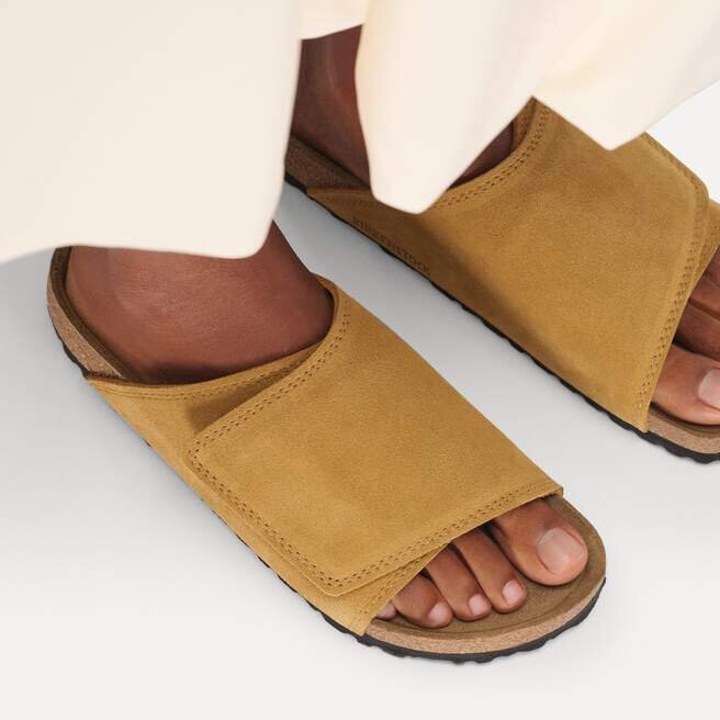 Birkenstock Solana kombinerar stabiliteten hos en sluten sko med sandalens lätthet. Även om den är sluten på sidorna är denna modell öppen vid tårna och hälen för att säkerställa att fötterna får tillräckligt med frisk luft. Det breda kardborrebandet ger perfekt stöd och kan justeras individuellt. Överdelen är tillverkad av särskilt mjukt mocka som omsluter foten som en andra hud.