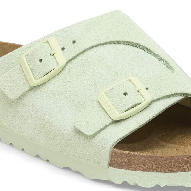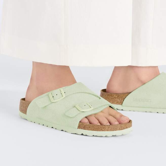 Tillbaka för att fira 60 år som en favorit bland fansen. ZüRich Slide återvänder med sin älskade design, med extra täckning och justerbarhet tack vare två metallspännen. Sammetmjukt mocka ger en klassisk känsla till ovandelen, ovanpå en stödjande, konturerad fotbädd. Lika bekväm som du minns den.