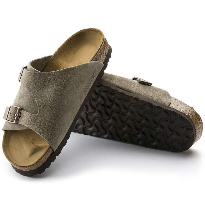 Tillbaka för att fira 60 år som en favorit bland fansen. ZüRich Slide återvänder med sin omtyckta design, med extra täckning och justerbarhet tack vare två spännen i metall. Sammetmjukt mocka ger ovandelen en klassisk känsla, ovanpå en stödjande, formad fotbädd. Lika bekväm som du minns den.