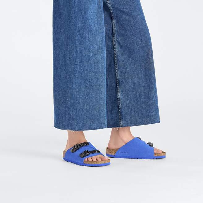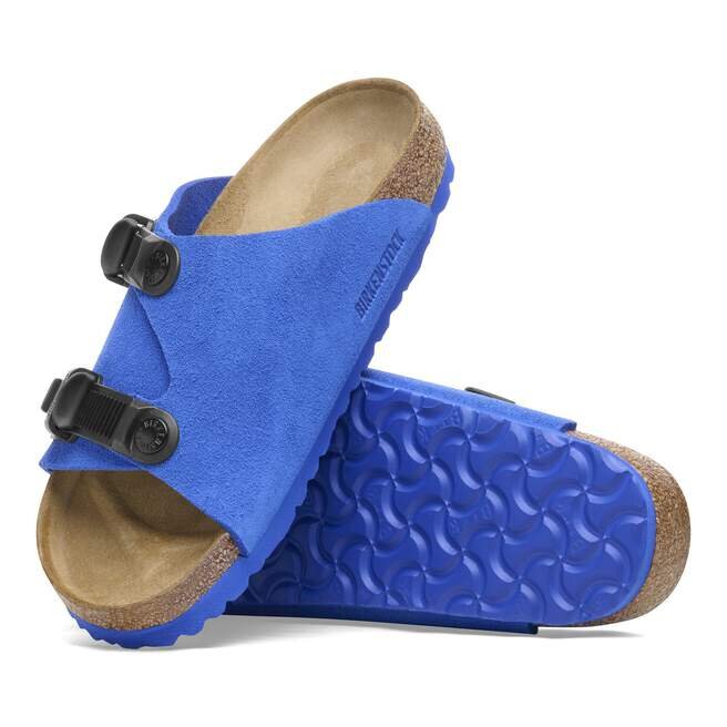 Vi presenterar nästa kapitel i vår ’64 Klassiker. ZüRich Tech Slide har remmar med spännen inspirerade av arbetskläder, anpassade för dagens stil. Sammetmjuk mocka ger en klassisk känsla till ovandelen, ovanpå en stödjande, konturerad fotbädd.