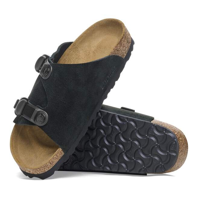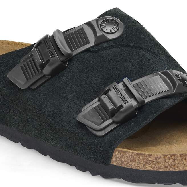 Vi presenterar nästa kapitel i vår klassiker från 1964. ZüRich Tech Slide har remmar med praktiska spännen som passar dagens stil. Sammetmjukt mocka ger ovandelen en klassisk känsla, ovanpå en stödjande, konturerad fotbädd.
