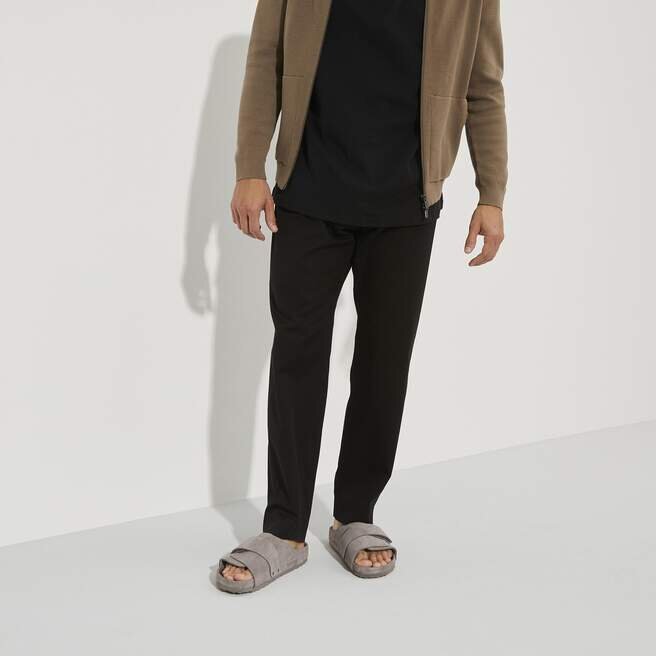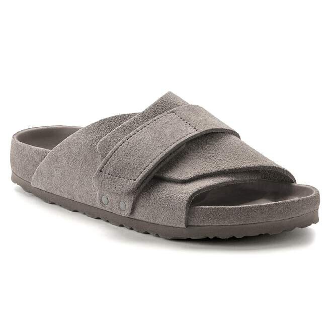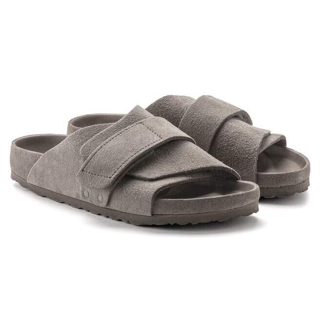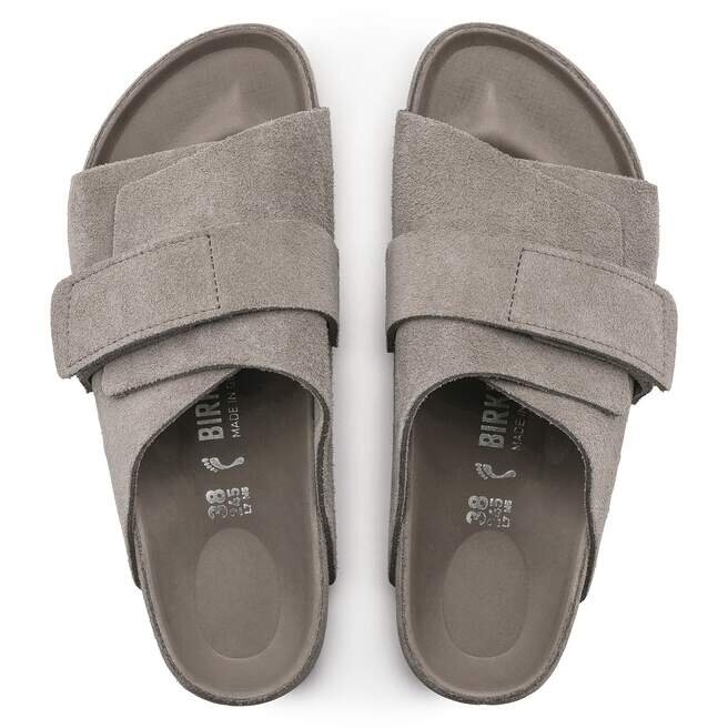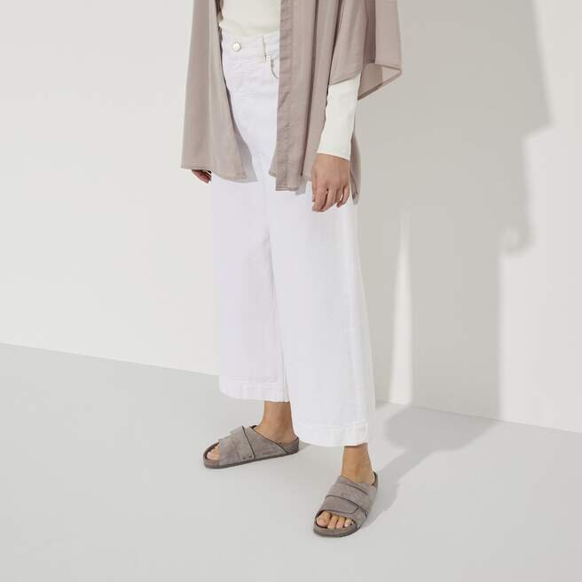 Den avslappnade Birkenstock Kyoto utmärker sig med sin omslutande design och individuellt justerbara kardborreförslutning. Detta ger den här stilfulla sandalen en passform och känsla som liknar en toffel. Denna utsökta modell har en fotbädd som är helt fodrad med lyxigt mjukt läder i matchande färg. Övre delen är tillverkad av särskilt mjukt mocka.