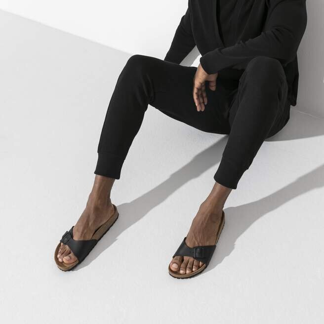 Den ursprungliga Birkenstock-sandalen. En rem, ett spänne och en formad fotbädd av kork kombineras mästerligt för att skapa Madrid. Överdelen är tillverkad av det hudvänliga, slitstarka syntetmaterialet Birko-Flor®.