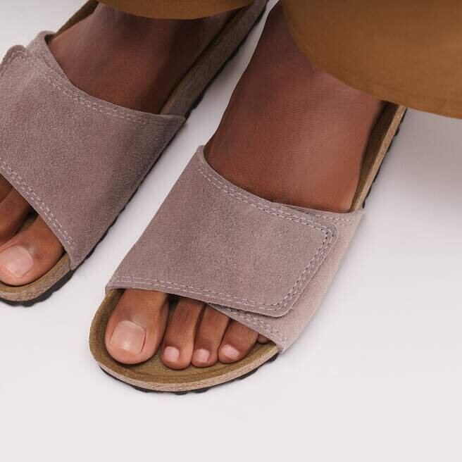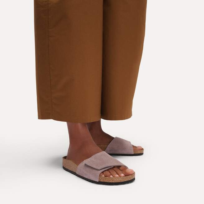 Den avslappnade Birkenstock Sylt 2.0 hämtar inspiration från den klassiska modellen Madrid och utmärker sig med sin kompakta design med ett brett kardborreband. Övre delen är tillverkad av särskilt mjukt mocka som omsluter foten som en andra hud.