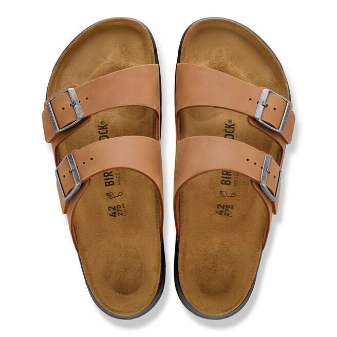 Arizona-sandalen, omgjord för vardagens äventyr. En PU-sula är slitstark och flexibel, med ett robust mönster för förbättrad grepp så att du kan gå utanför allfarvägen om du vill. En ovandel i oljat läder får en klassisk finish ju mer du bär den. Med en konturerad fotbädd som ger stöd när du är på språng.