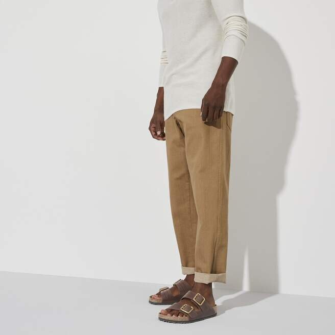 Den legendariska designen med två remmar från Birkenstock – Arizona. Ikonisk stil med den karakteristiska komforten från Birkenstocks fotbädd. Denna moderna version av vår klassiska Arizona har ett dubbelklämspänne i mässing i samma färg och en yttersula i gummi med hög greppförmåga. Den dämpande mellansulan i EVA ger stabilitet och komfort. Tillverkad av premiumläder med prägling längs kanterna