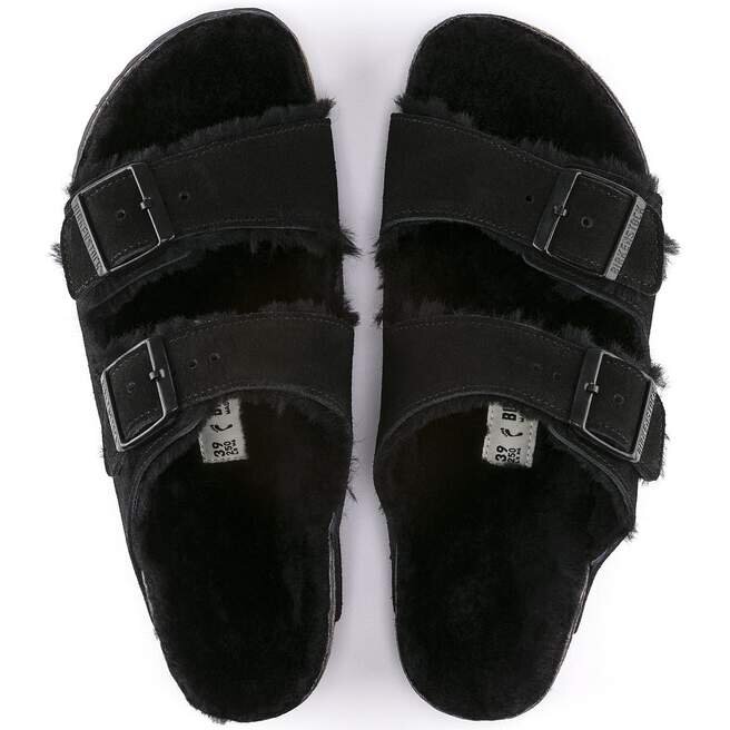 Arizona-sandalen, gjord bekväm för de kallare månaderna. Klassisk mocka ger en sammetslen känsla som fortsätter på insidan. Modellen är helfodrad med äkta fårskinn, ända ner till den ursprungliga konturerade fotbädden. En mjuk, stödjande landning varje gång.