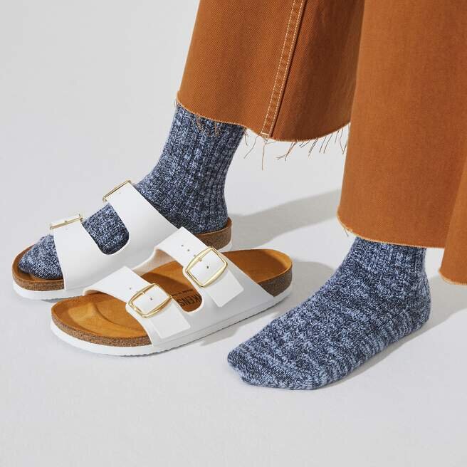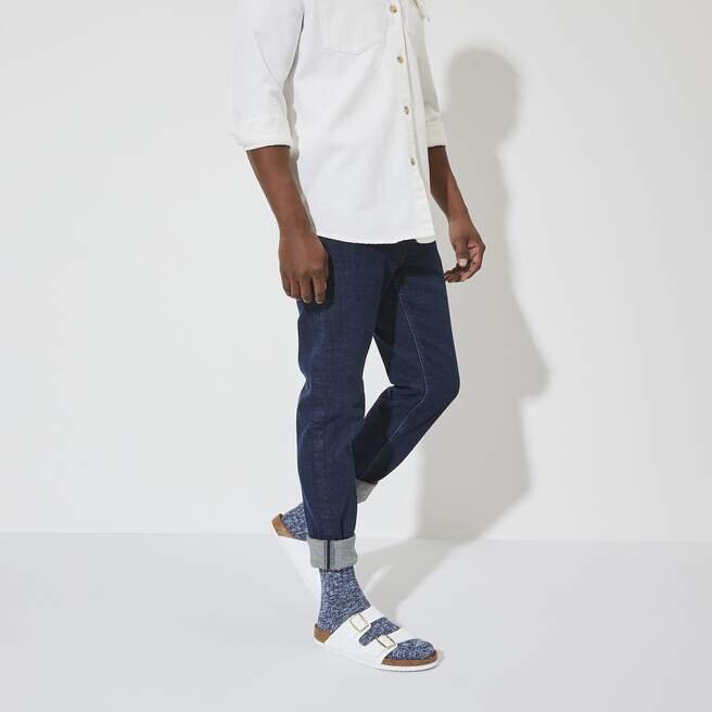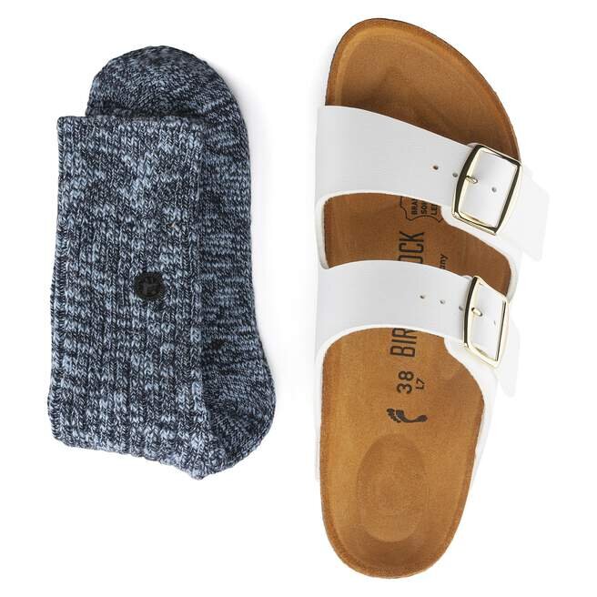 Birkenstock Arizona lanserades 1973 och har sedan dess blivit en av våra mest kända och eftertraktade sandaler. För att fira 50-årsjubileet återupptar vi den ursprungliga designen i en jubileumskollektion i begränsad upplaga, där spännen, fotbäddsstämpel, yttersula och förpackning alla är inspirerade av originalet från 1973. För att fira 50 år och den ”Socks & ’Stocks”-look som våra fans gjort populär, levereras varje modell med ett par retroinspirerade strumpor för att fullända den nostalgiska känslan.