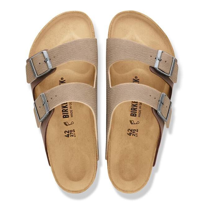 Birkenstock Arizona är en äkta klassiker som har glatt både män och kvinnor i årtionden. Denna enkla sandal med två remmar står för tidlös design och har länge haft kultstatus tack vare sin komfort. Det sofistikerade syntetmaterialet Birko-Flor® ger sandalremmarna en matt yta som påminner om naturligt läder, men de är ändå 100 % veganska. Ovansidan är tillverkad av mjuk mikrofiber med en sammetslen känsla.