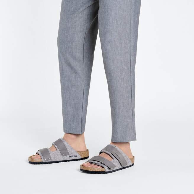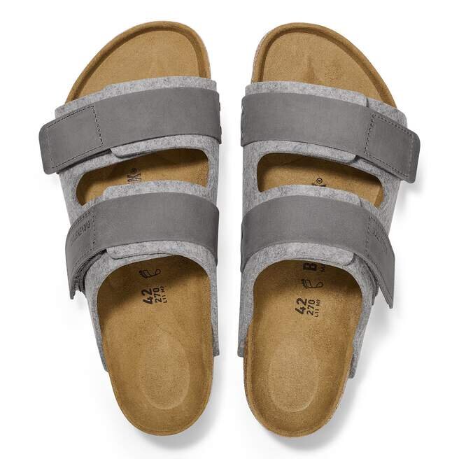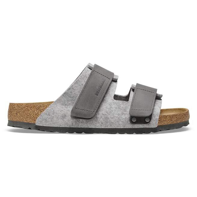 Modern stil, tidlös struktur. Uji-sandalens filtade ovandel sluter tätt runt foten och fästs med kardborreband i naturläder för perfekt passform. Med en originalformad fotbädd som ger stöd kommer den att kännas som din egen, vart du än tar den.