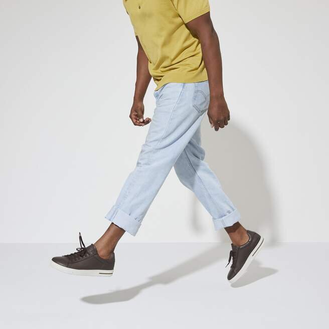 Naturläder känns igen på sin obehandlade yta. Birkenstock behandlar medvetet inte ytstrukturen och andra karakteristiska drag. Birkenstock använder robust läder med en tjocklek på 2,8 till 3,2 millimeter som överdel.