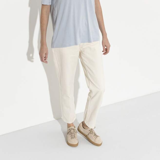 Naturläder känns igen på sin obehandlade yta. Birkenstock behandlar medvetet inte ytstrukturen och andra karakteristiska drag. Birkenstock använder robust läder med en tjocklek på 2,8 till 3,2 millimeter som överdelsmaterial.