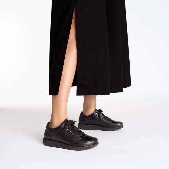 Polyuretan (PU) är ett flexibelt, vatten- och smutsavvisande syntetmaterial som gör skorna lätta att sköta.