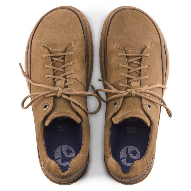 Vi presenterar Birkenstock Honnef – vår senaste smarta gataskor som är helt konstruerad kring vår nya Deep Blue-fotbädd. Den fyrdelade fotbädden innehåller ett fuktavvisande mikrofiberfoder, lager av kork och jute för optimalt stöd för fotvalvet samt en PU-bas för extra stötdämpning och dämpning i framfoten. Den sportiga snörningsmodellen är perfekt för dina mest aktiva dagar, oavsett om det är en dag på stan eller ditt nästa reseäventyr. Det mjuka ovandelen i mocka är slitstarkt och lätt att rengöra, med fullt justerbar snörning för optimal passform och en yttersula i formsprutat gummi för extra grepp och hållbarhet.