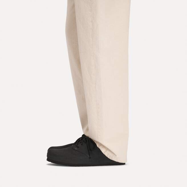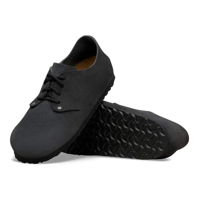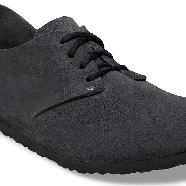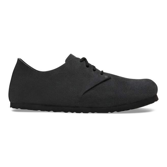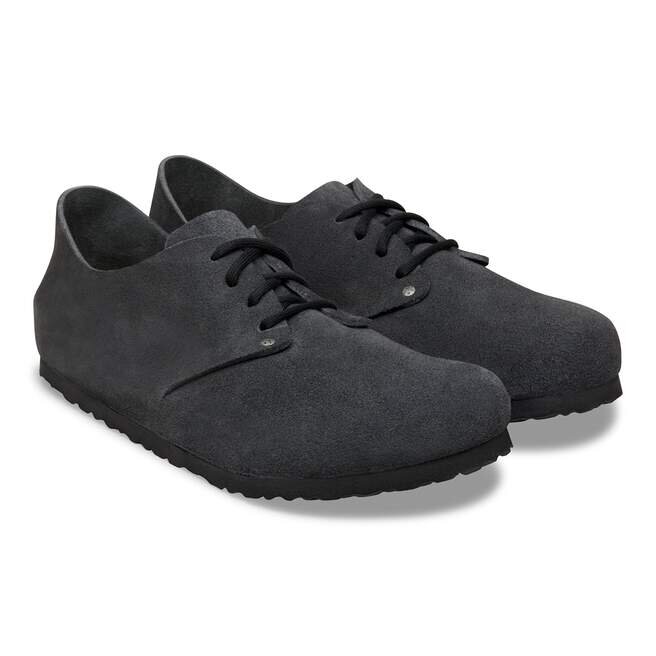Birkenstock Maine har ett naturligt utseende. Den speciella sömlösa konstruktionen med en iögonfallande läderdel på hälen hålls samman av två nitar och snörningen med två hål. Bomullssnörena och designen utan foder rundar av den låga skon med ett naturligt, rustikt utseende. Övre delen är tillverkad av särskilt mjukt mocka som smiter åt foten som en andra hud.