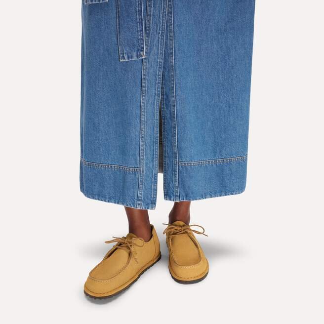 En bekväm modell inspirerad av mockasiner. Utti-skorna är utformade för komfort, med en mjuk hälflik och justerbara, rundade snören. Inuti ger en förstklassig, djupblå fotbädd flera lager av stöd, med ett fuktavvisande foder och en PU-bas som optimerar din naturliga gångrörelse. Känn dig bekväm.