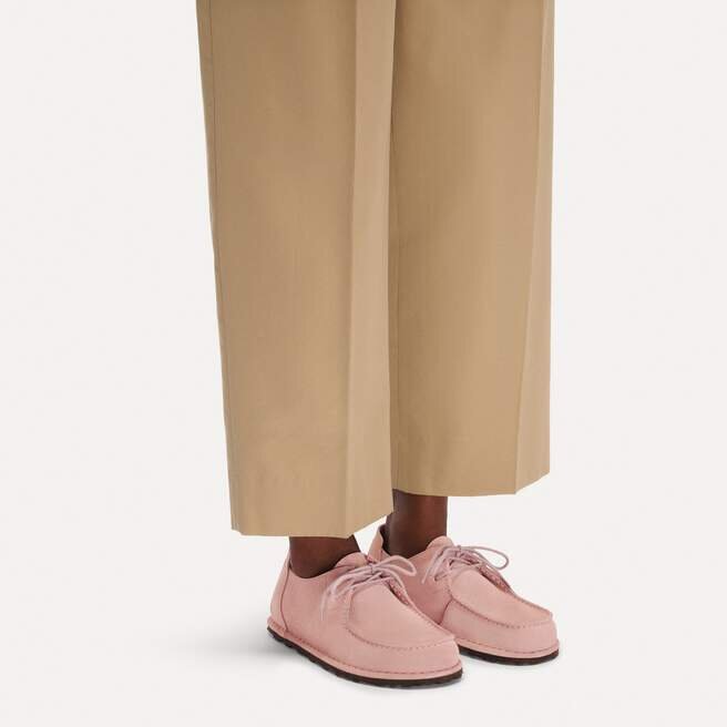 Mocka är ett spaltläder med en uppruggad yta. Det har en sammetslen yta och är mycket mjukt att ta på. Det har också en hög fuktabsorptionsförmåga. Mocka är mjukare och mer flexibelt till sin natur och har inte samma stabilitet som slätt läder. Mjukläderets stabilitet varierar också från skinn till skinn. Detta utgör inte ett material- eller tillverkningsfel.