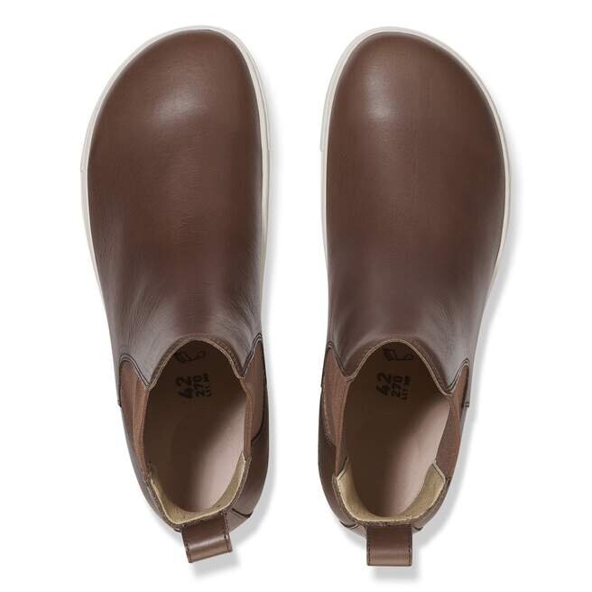 Naturläder känns igen på sin obehandlade yta. Birkenstock behandlar medvetet inte ytstrukturen och andra karakteristiska drag. Birkenstock använder robust läder med en tjocklek på 2,8 till 3,2 millimeter som överdel.