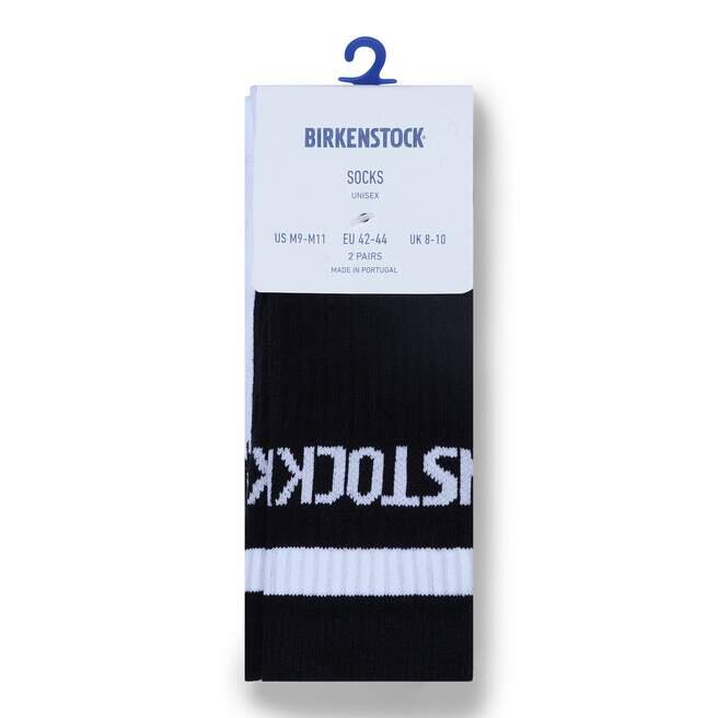 Detta set består av två par Birkenstock-tennisstrumpor i bomull. Dessa Birkenstock-strumpor är tillverkade av bomull. Den tryckfria, elastiska mudden garanterar maximal komfort. De kontrasterande ränderna och Birkenstock-logotypen vid vristen ger en sportig touch.