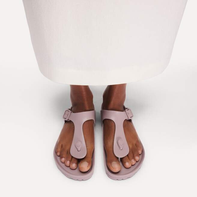 Birkenstock Gizeh är vår klassiska tåsandal. Denna sandal är inspirerad av Cork Original och tillverkad av ultralätt och mycket flexibelt EVA. Dessa färgglada sandaler är stötdämpande, vattentäta och hudvänliga. Bär dem på stranden, i trädgården eller på wellness- och spa-anläggningar. De är det perfekta komplementet till dina klassiska Birkenstock-sandaler.