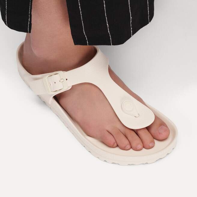 Birkenstock Gizeh är vår klassiska tåsandal. Denna sandal är inspirerad av Cork Original och tillverkad av ultralätt och mycket flexibelt EVA. Dessa färgglada sandaler är stötdämpande, vattentäta och hudvänliga. Bär dem på stranden, i trädgården eller på wellness- och spa-anläggningar. De är det perfekta komplementet till dina klassiska Birkenstock-sandaler.