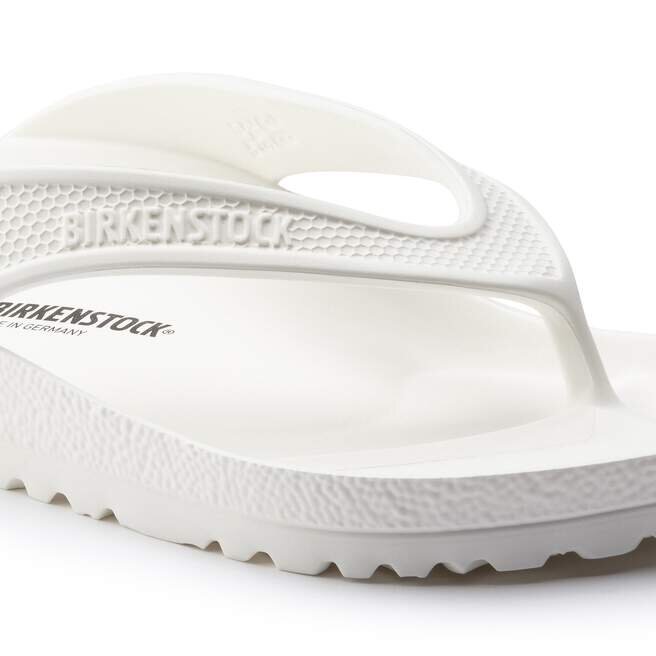 Birkenstock Honolulu är en sportig tåsandal med präglade remmar. Denna sandal är inspirerad av kork-sandalen och tillverkad av lätt, flexibel och vattentät EVA.