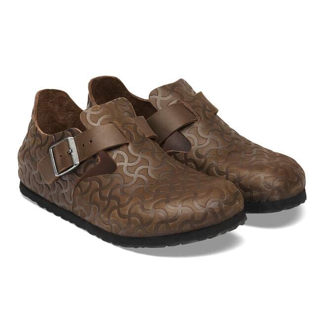 Birkenstock London är en variant av den klassiska Boston. Den upphöjda hälpartiet är karakteristiskt för denna enkla låga sko utan sömmar. Den har ett naturligt, rustikt utseende och en öppen kant, ofodrad finish. Den halvfodrade fotbädden är helt fodrad med mjukt Piumato-läder, vilket gör den exceptionellt bekväm. Övre delen är tillverkad av präglat naturläder.