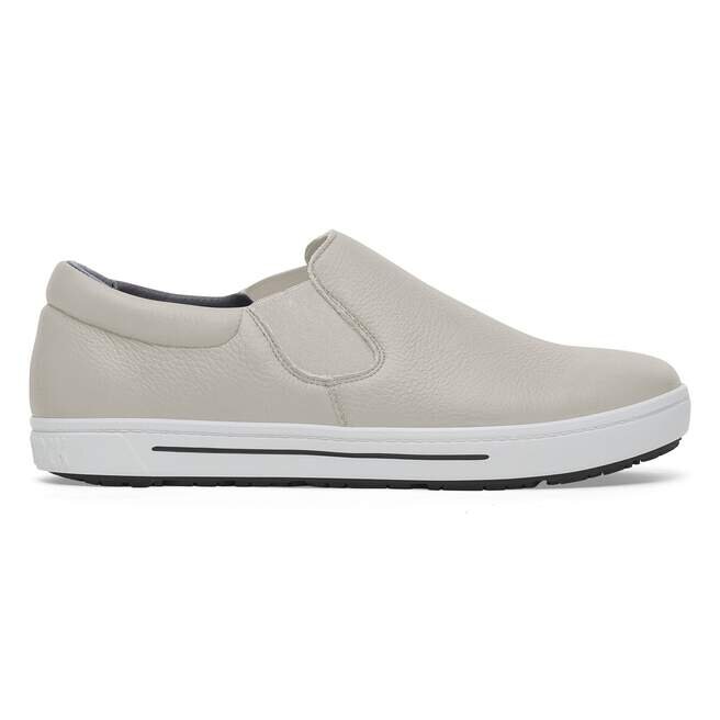 Birkenstocks arbetssko Qo400 med uttagbar fotbädd ger ett fast grepp och avlastar dina fötter, så att du kan stå och röra dig bekvämt på jobbet i många timmar, även i krävande miljöer. Qo400 har inga snörning och presenteras som en enkel slip-on-sko. Den halkfria och olje- och bensinbeständiga yttersulan ger stötdämpning runt hälen. Ovansidan är tillverkad av vattenavvisande slätt läder (Wru) och erbjuder antistatiskt skydd. Skorna är certifierade enligt EN ISO 20347:2012 och uppfyller kraven för skyddskategori O2.