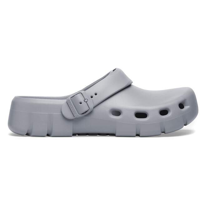 Vi presenterar vår första klack för återhämtning efter träning, den helt nya Birki Flow. Birki Flow är utformad efter konturerna på vår ikoniska fotbädd och bygger vidare på våra bästsäljande EVA-träskor med en extremt andningsbar och vattenvänlig stil. Komplett med klassiska Birkenstock®-designelement, från den justerbara bakre remmen till det formgjutna spännet.