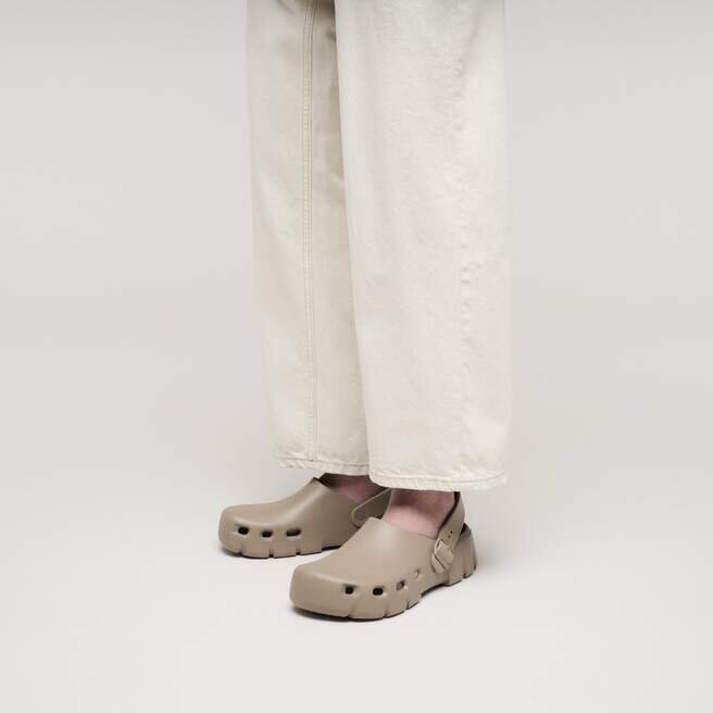 Vi presenterar vår första träskor för återhämtning efter träning, den helt nya Birki Flow. Birki Flow är utformad efter konturerna på vår ikoniska fotbädd och bygger vidare på våra bästsäljande EVA-träskor med en extremt andningsbar och vattenvänlig stil. Komplett med klassiska Birkenstock®-designelement, från den justerbara bakre remmen till det formgjutna spännet.