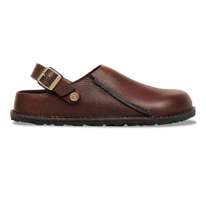 Birkenstock Lutry är en toffel som kan bäras som en sandal med bakre rem eller som en öppen Träsko tack vare den flexibla ankelremmen. Fotbädden är uttagbar, så att du kan välja mellan tre olika fotbäddsvarianter. Denna basversion har vår standardfotbädd. Den efterliknar det naturliga avtrycket som en fot lämnar i sand och ger dig komfort hela dagen. Övre delen är tillverkad av mjukt, kornat naturläder.