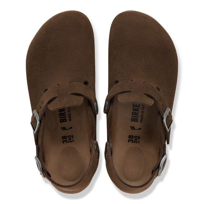 Tokio Träskor har blivit omhuldad av modevärlden för sin höga komfort och befäster sitt rykte i klassiskt mocka. Med en ton-i-ton-läderrem bak och en originalformad fotbädd är den här modellen så bekväm att du aldrig kommer att tveka.