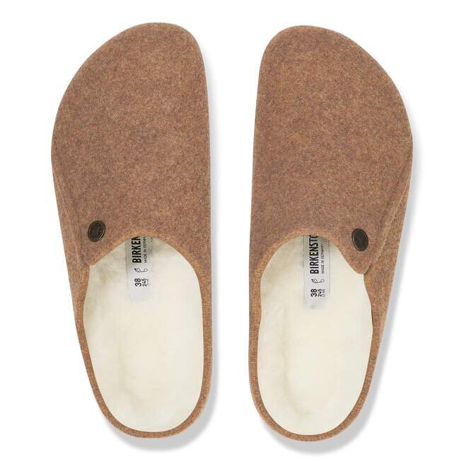 Birkenstock Zermatt är vår första riktiga toffel. Den har vår ikoniska fotbädd i kork och latex, och för att du ska ha det extra mysigt är den helt fodrad med äkta fårskinn som håller dina fötter varma hela vintern. Överdelen består av mjuk äkta ull.