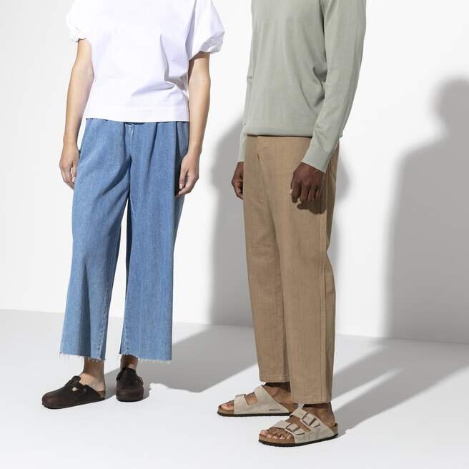 Naturläder känns igen på sin obehandlade yta. Birkenstock behandlar medvetet inte ytstrukturen och andra karakteristiska drag. Birkenstock använder robust läder med en tjocklek på 2,8 till 3,2 millimeter som överdel.
