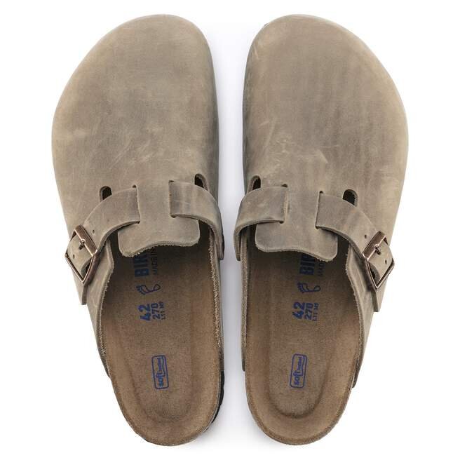 Vår mest eftertraktade träsko, Boston, ger en trendig touch till vilken stil som helst. Det oljade nubucklädret är handgjort för kvalitet och har en tydlig traditionell look, utformat för att åldras med tiden och få ett perfekt slitet, unikt utseende. Den mjuka fotbädden har ett extra skumlager för dämpning och erbjuder extra komfort samt stöd hela dagen.Birkenstock’s dämpade, mjuka Soft Footbed skapar anpassat stöd med användning