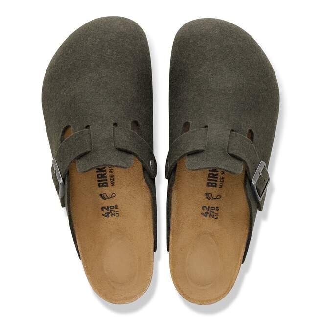 Vår mest klassiska och mångsidiga träsko får säsongens hetaste material. Boston har en enkel slip-on-design som känns omedelbart avslappnad i mjuk ullfilt. Komplett med legendariska Birkenstock-designelement, som en konturerad fotbädd i kork och latex för ultimat stöd.