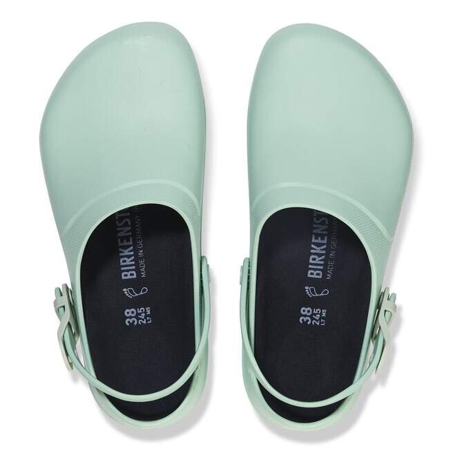 Den nya Birki Air 2.0-tränskor är utformad efter konturerna på Birkenstock®-fotbädden och inleder nästa generation av vår yrkesskor med en innovativ, vätskebeständig design. Sidoventiler hjälper till att leda bort vätska och förbättrar andningsförmågan. Med alla extrafunktioner, som ett tvättmedelsvänligt spänne, avtagbar bakrem och konturerad PU-fotbädd som ger stöd under långa timmar på fötterna. Sätt komforten i arbete.