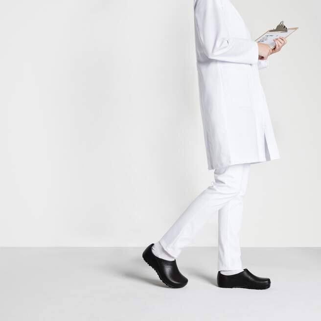 Profi-Birki-träskorna förbättrar komforten på jobbet från häl till tå. En sluten bakdel ger trygghet, medan den förlängda fronten håller framfoten säkert på plats. Vätskebeständigt PU och en stötdämpande yttersula med bra grepp gör dem perfekta för vård, hotell- och restaurangbranschen och överallt där du utför ditt arbete. Profi-Birki bygger på beprövat anatomiskt stöd – känn på fotbädden så märker du skillnaden efter långa timmar på fötterna. Tvätta och desinficera träskorna i upp till 175 °F och den uttagbara fotbädden i upp till 140 °F.