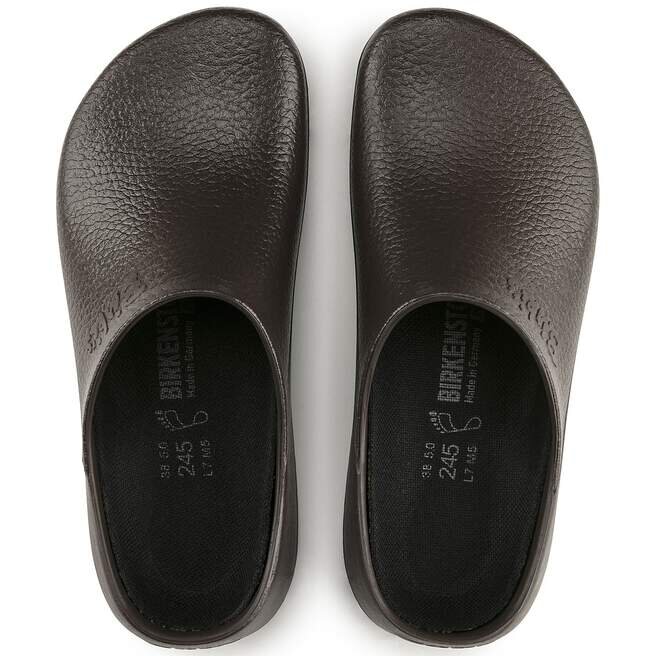 Super-Birki Träskor är en favorit i Yrkesskor och ger komfort på jobbet i just din färg. Vätskebeständigt PU och extra grepp gör dem perfekta för vård, hotell- och restaurangbranschen och överallt där du behöver extra hjälp för att få jobbet gjort. Tvätta och desinficera träskorna i upp till 60 °C och den avtagbara fotbädden i upp till 30 °C. Modellen bygger på beprövat anatomiskt stöd – känn på fotbädden så märker du skillnaden efter långa timmar på fötterna.
